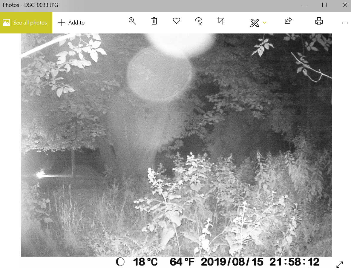 We don’t know. Hopefully you can see the “stick” moving up and down. It’s placement in pics just seems odd to us. Like I said, no wind that night and other pics just don’t place anything in that position. Could be nothing, but I wanted to share it anyway. Btw…have no idea what the circles are, could be glare. Dew? Who knows. Let us know what you think….till then,
